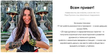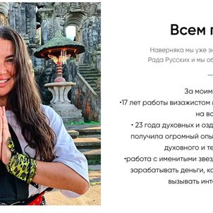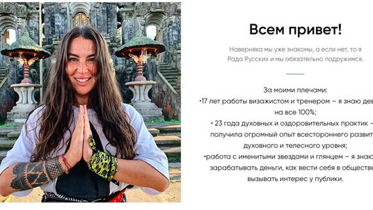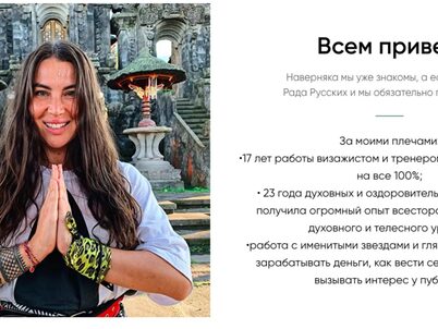 Эксклюзивный курс от Рады Русских и Ольги Чебыкиной о том, как производить нужное вам впечатление. СТАРТ 1 МАЯ Описание: Кому необходим этот курс: Всем, кто хочет получать предсказуемый результат от общения с внешним миром Всем, кто хочет научиться производить приятное впечатление ещё до начала