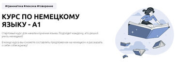 Годовой курс. 61 занятие: Занятие длится 1 академический час. Кому будет полезен курс Курс для тех, кто хочет изучать немецкий язык с нуля. Какие знания дает курс Темы начального и продвинутого уровня, возможность сдать Goethe-Zertifikat на уровень А1. Какие навыки даёт Курс Курс позволяет
