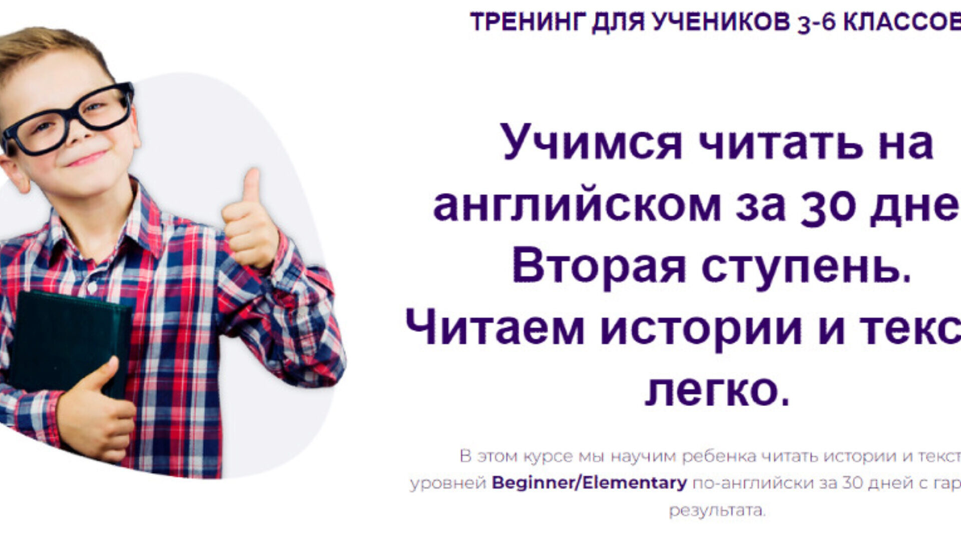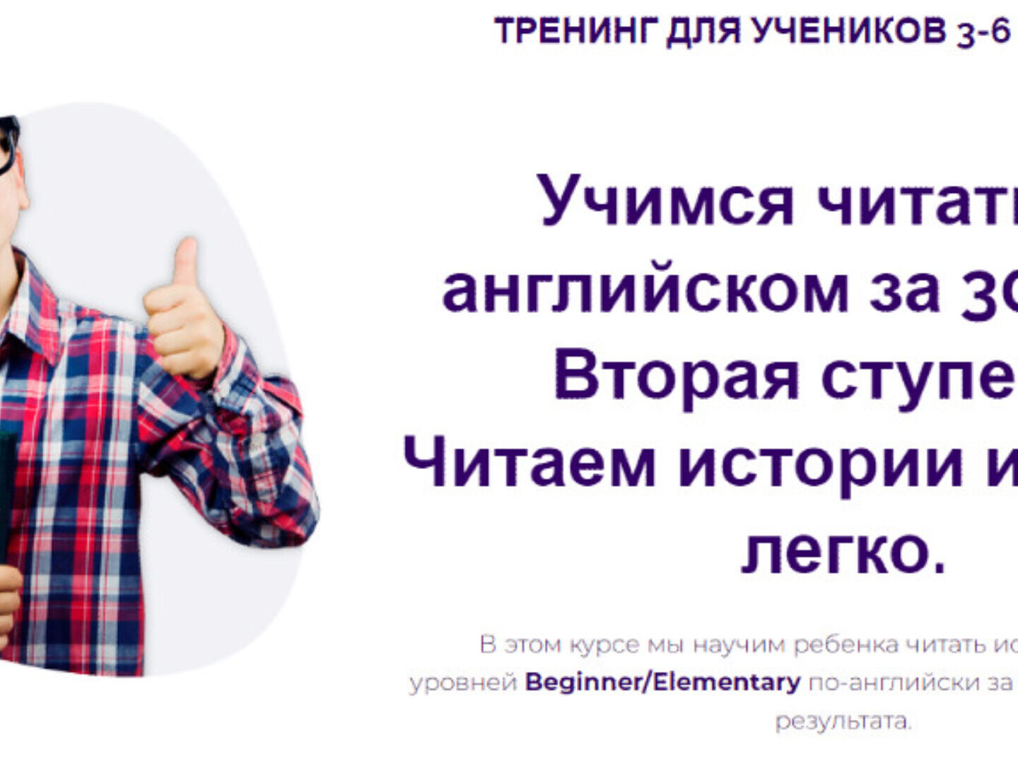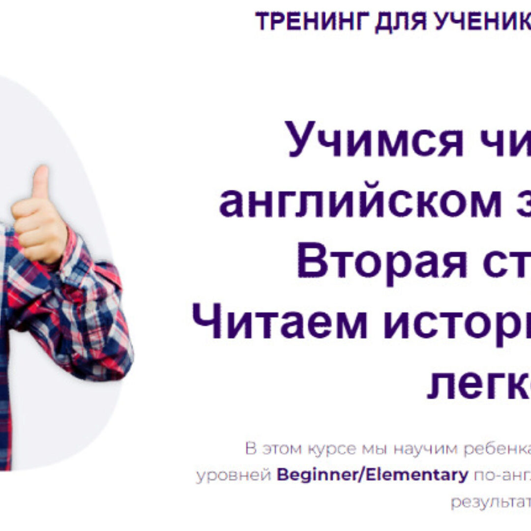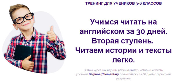 В этом курсе мы научим ребенка читать истории и тексты уровней Beginner/Elementary по-английски за 30 дней с гарантией результата.