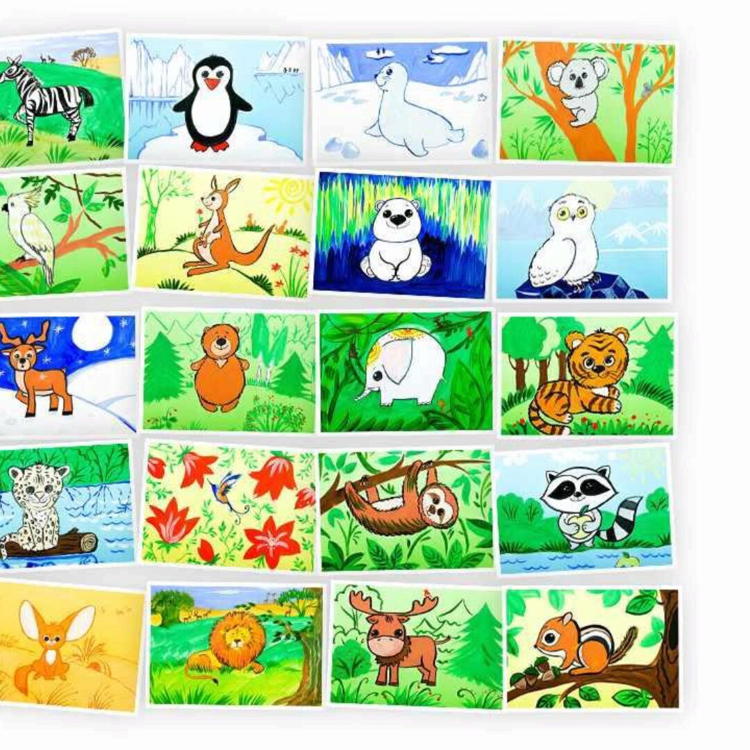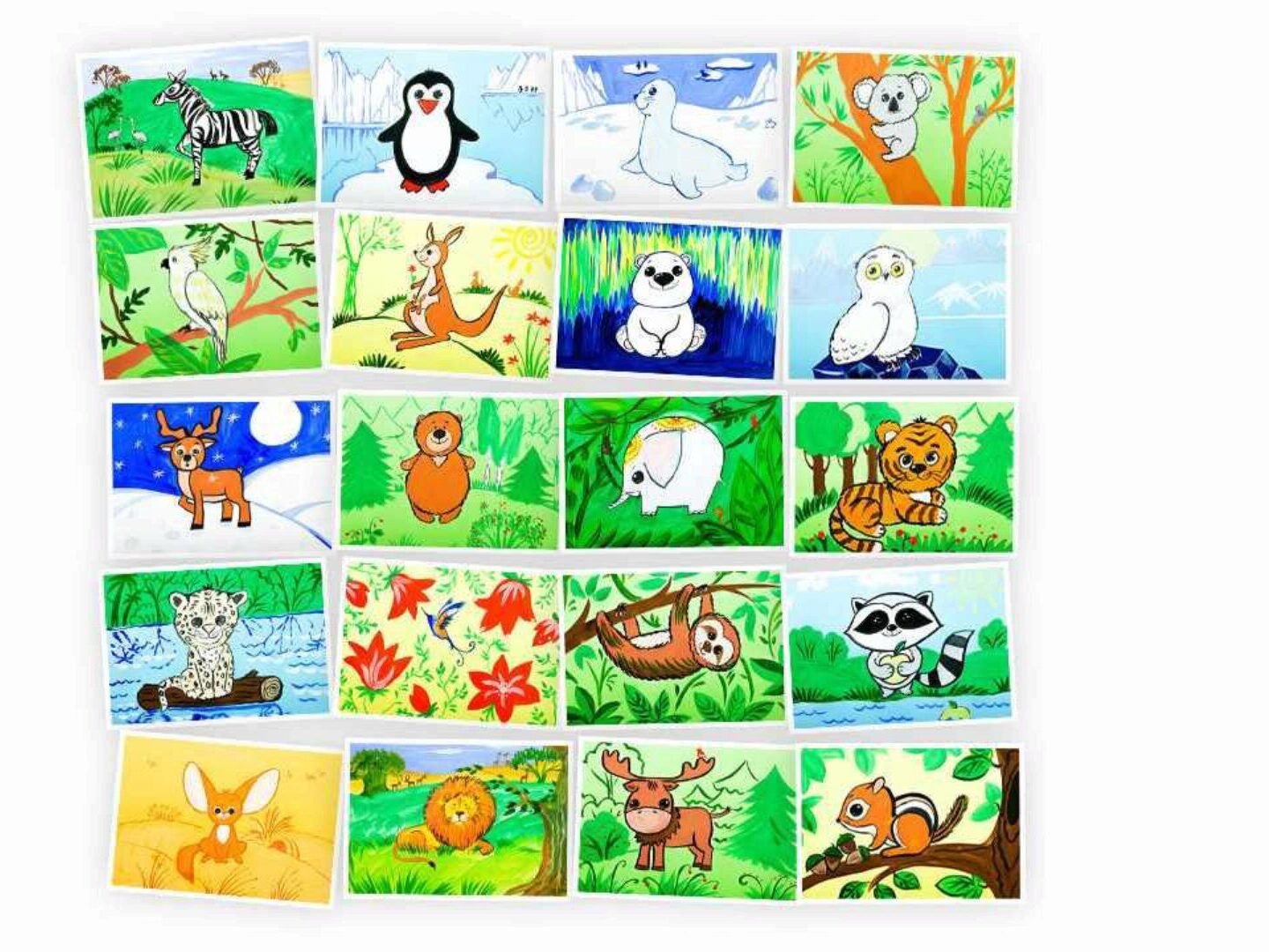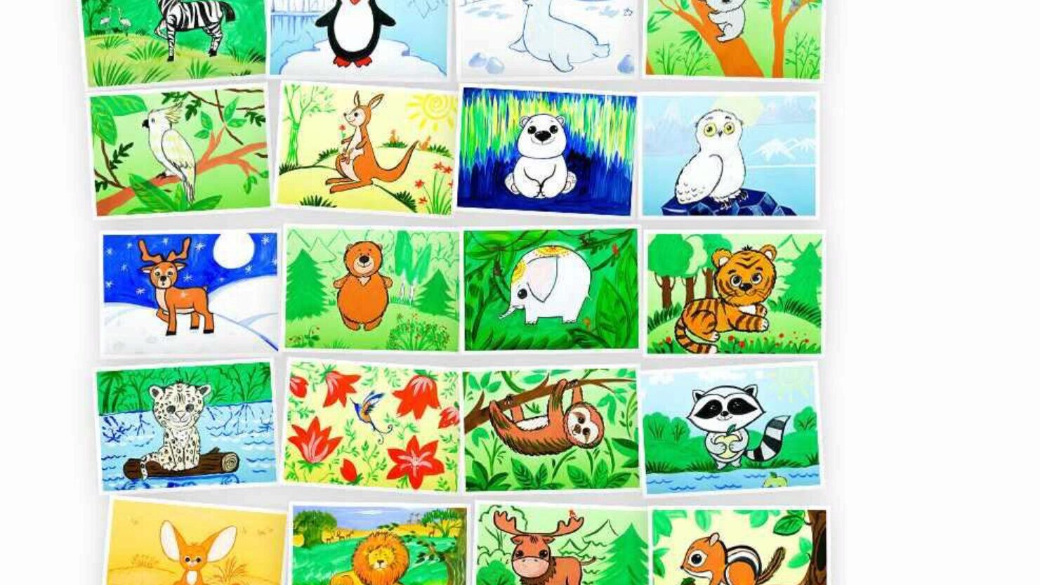 За время онлайн-курса Ваш ребенок нарисует 20 картин. А также узнает много интересной информации о животных и географии.