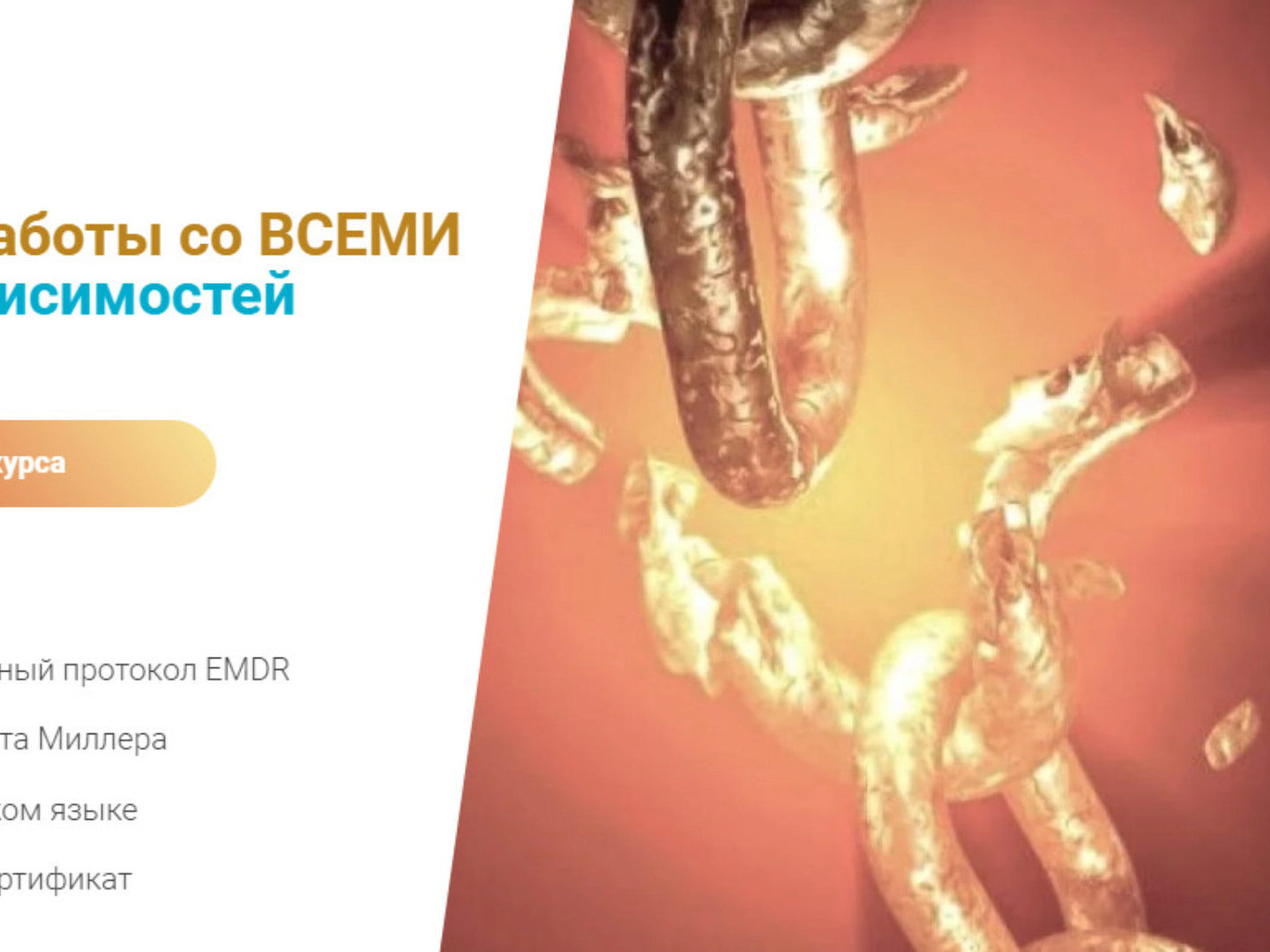 Для каждого участника курса зависимости раз и навсегда перестанут быть запросом на длительную и сложную терапию.