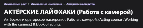 Роман Федосов «Актёрские лайфхаки. Работа с камерой» — Udemy