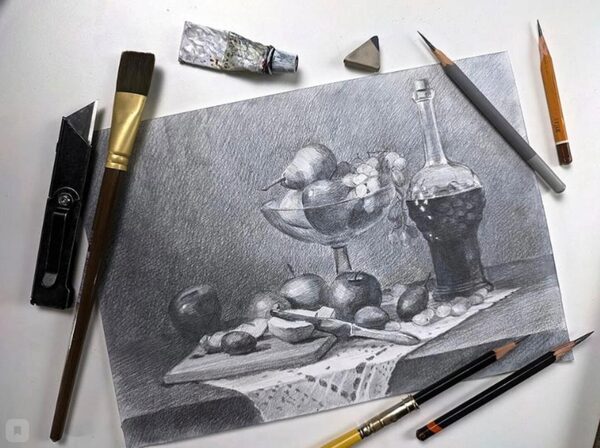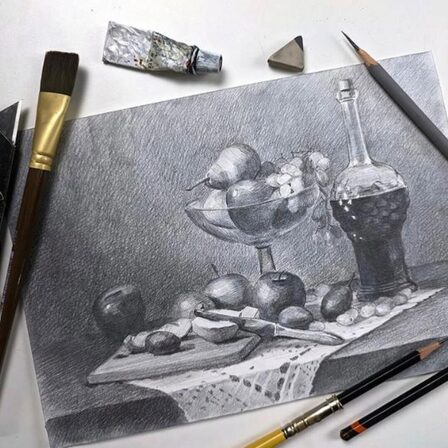 Пройти путь от рисования простых геометрических форм до сложных многопредметных натюрмортов