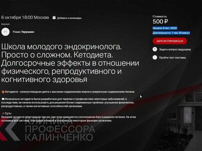 Роман Терушкин «Кетодиета. Долгосрочные эффекты в отношении физического, репродуктивного и когнитивного здоровья» — Клиника Калинченко