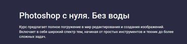 Чему вы научитесь Владение Photoshop Этот курс идеально подходит для начинающих «Никогда раньше не пользовался фотошопом» Изучите все основы и инструменты Photoshop Вы сможете добавить Photoshop в свое резюме Понимание слоев и их панелей Создадите дизайн сайта с нуля Что такое маски и как их