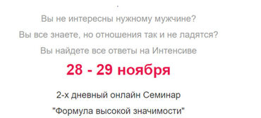 Мы даем знания, которые работают в жизни В интернете полно «Гуру», которые раздают налево и направо советы по отношения с мужчинами. Часто эти рекомендации звучат интересно, и подаются «Супер-коучем» очень ярко. Но 99% этих советов не работают в реальной жизни. Либо могут сработать лишь в какой-то