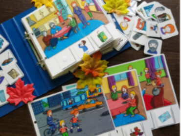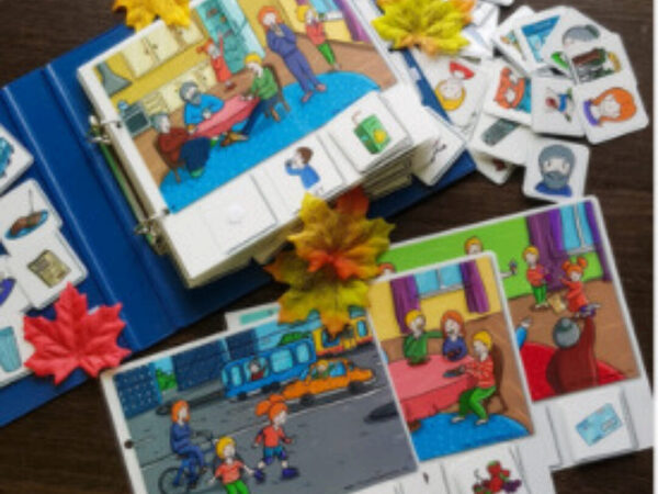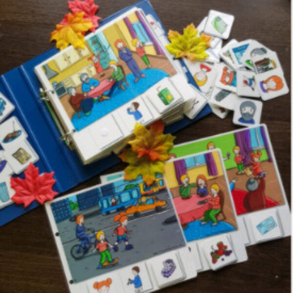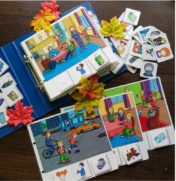 Новинка! Потрясающее пособие на развитие речи, изучения действий и рассказа по картинкам. В состав входят 24 страницы, 24 различные истории. Ребенку нужно в правильной и последовательности собрать карточки из различных социальных историй: 1. Зима 2. На даче 3. Физкультура 4. Детская площадка 5.
