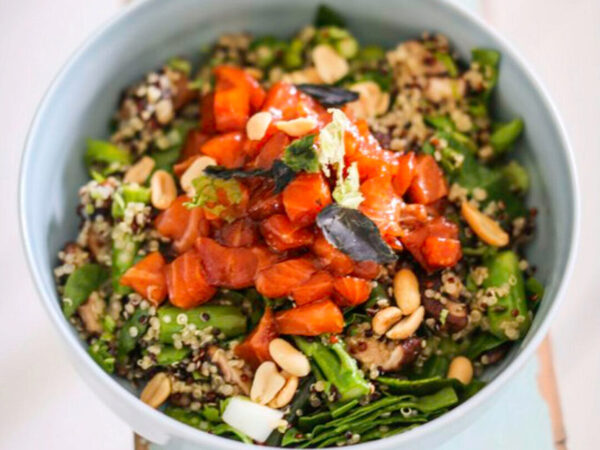 - Салат с куриной грудкой и заправкой-винегретом со спирулиной