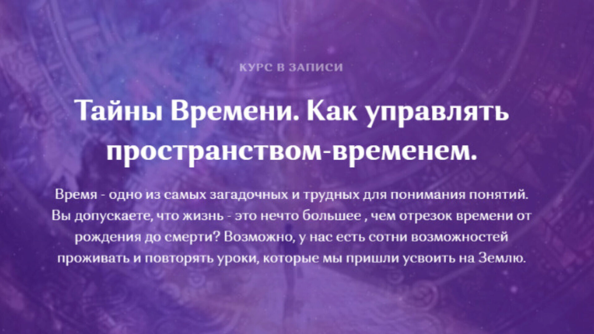 Семинар сочетает теорию , медитативные практики и упражнения, позволяющие ощутить многоуровневость Времени.
