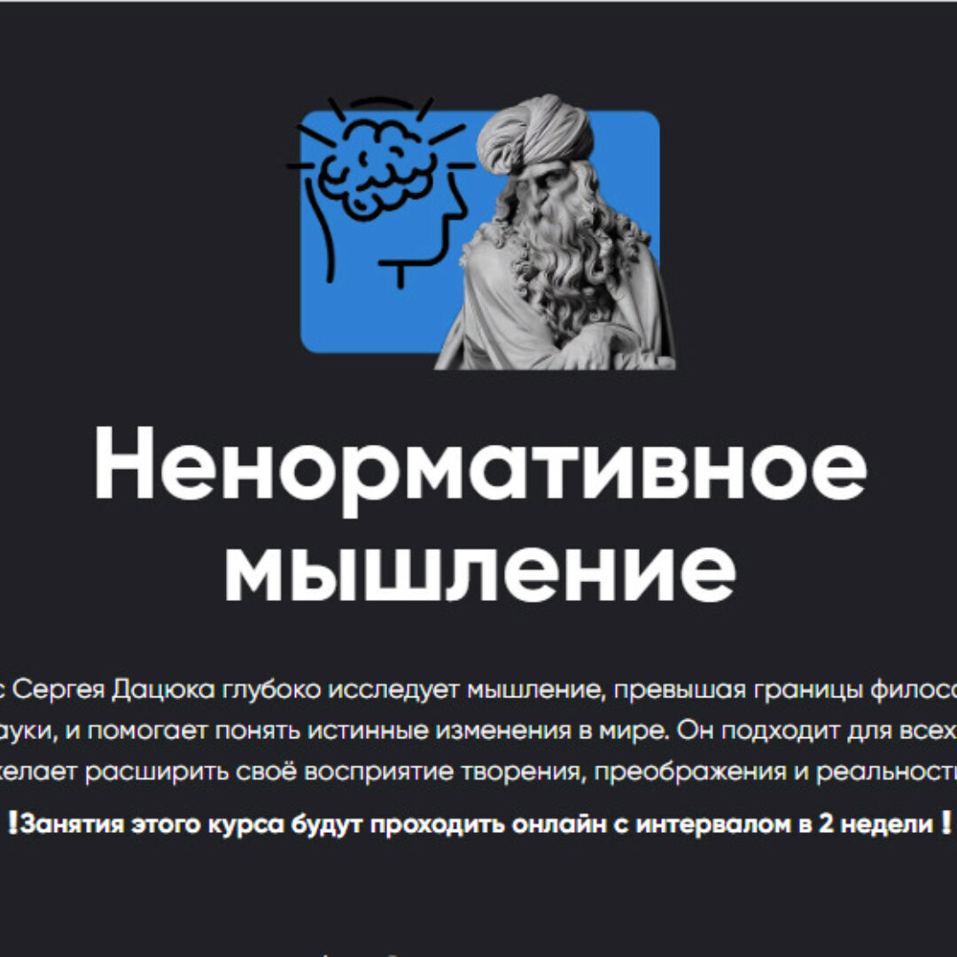 Речь идет о курсе лекций «Ненормативное мышление» философа, теоретика, мыслителя Сергея Аркадьевича Дацюка и создан в ответ на следующие вызовы: