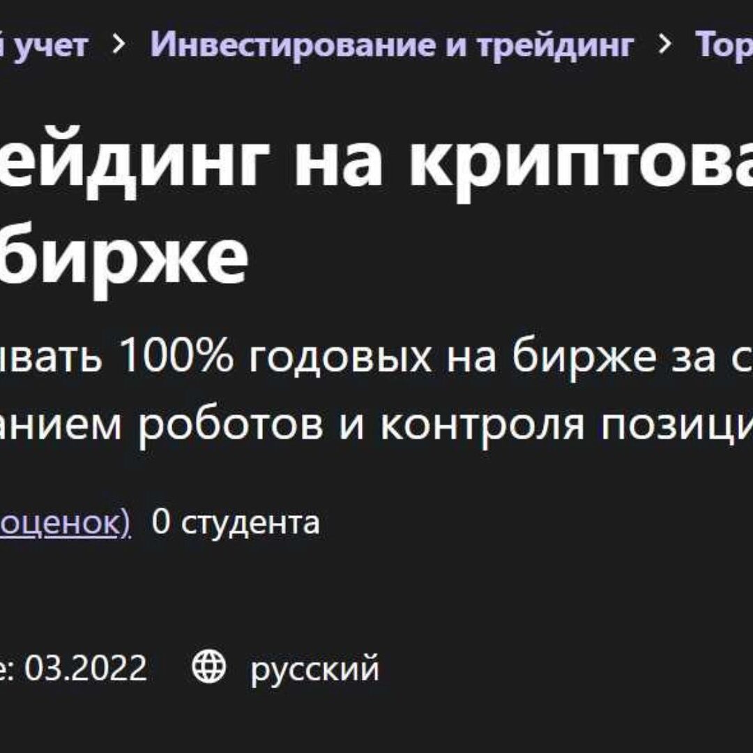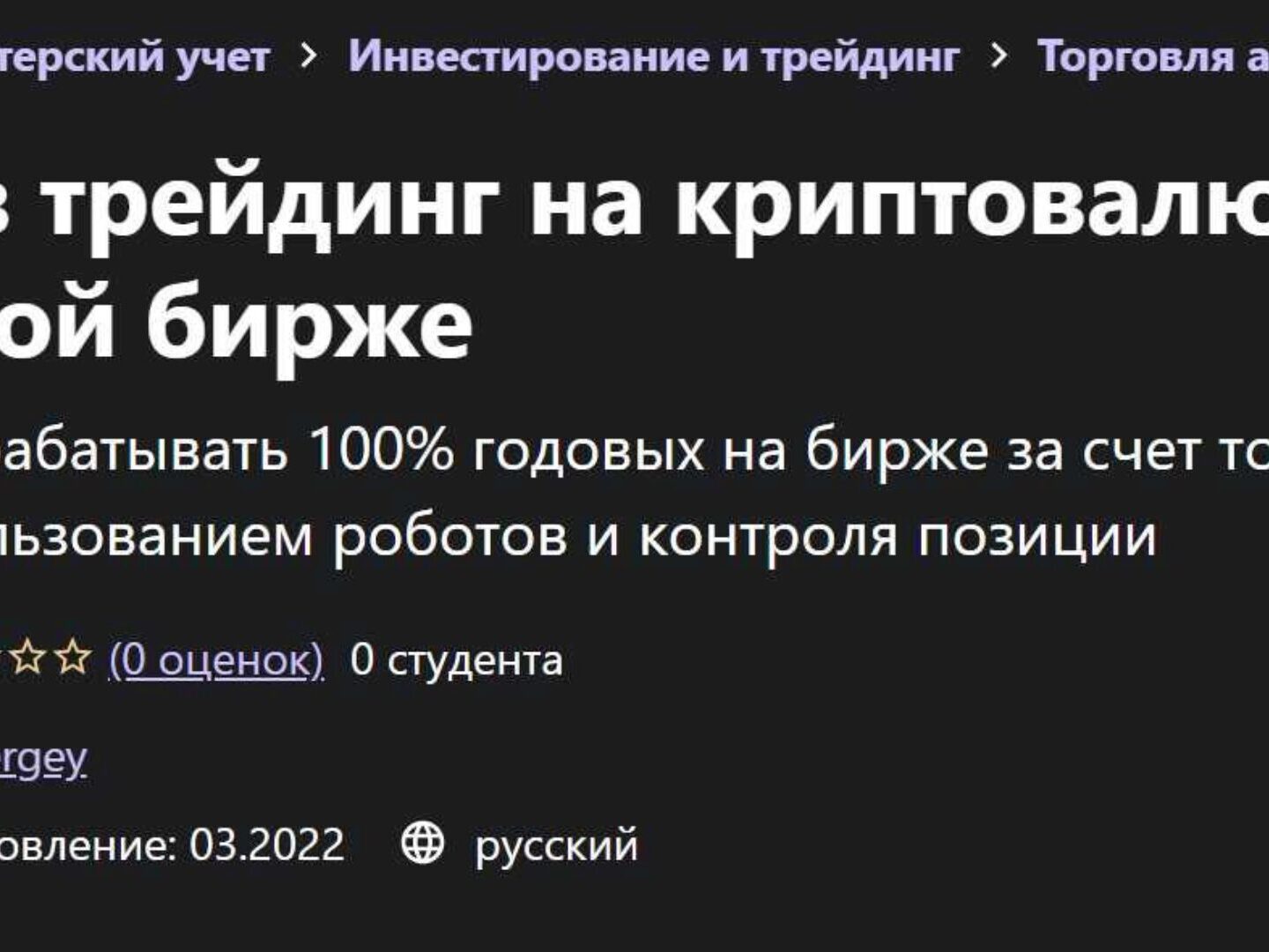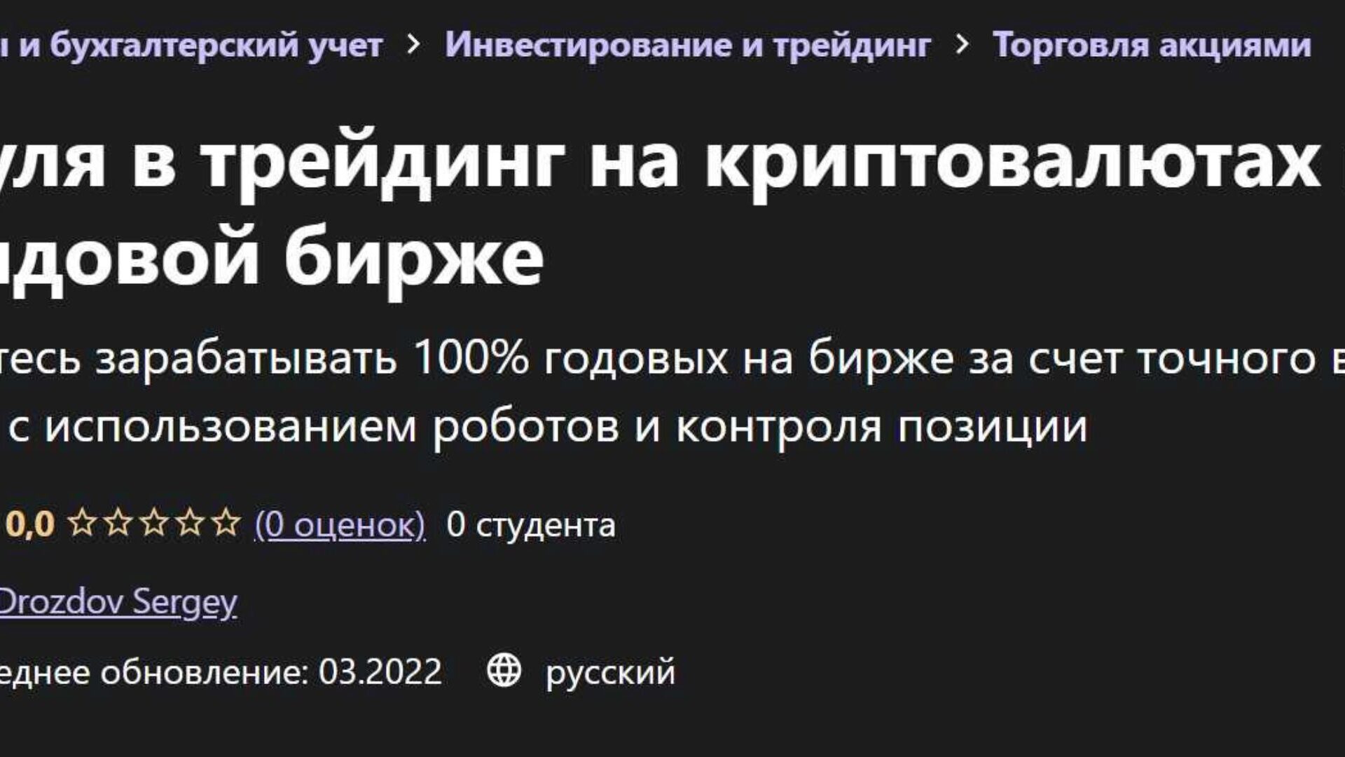 Сергей Дроздов «С нуля в трейдинг на криптовалютах и фондовой бирже» — Udemy