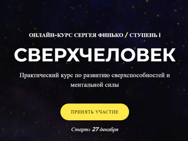 «Сверхчеловек» — это 17-часовой онлайн-курс, который поможет вам расширить границы восприятия мира и развить сверхспособности: сверхслух, ясновидение, яснознание.