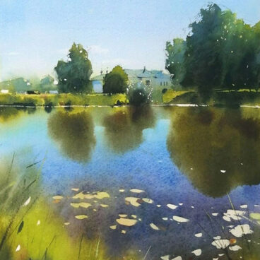 Работаем с необычным вертикальным пейзажем с интересной композицией. Научимся передавать знойное состояние природы, нарисуем отражение зелени в воде, впишем в пейзаж элементы архитектуры.