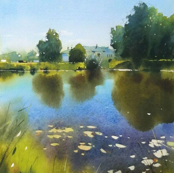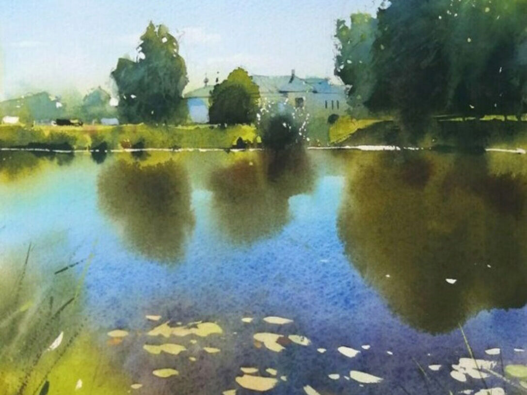 - научитесь рисовать отражения неба и деревьев в воде, вписывать в пейзаж элементы архитектуры;