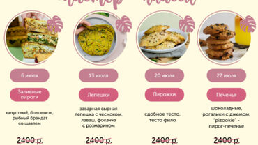 13 июля - «Лепешки». Завтраки станут веселее, обеды сытнее, еще больше полюбите брать из дома перекусы, освоив приготовление фокаччи с розмарином, лаваша и заварной сырной лепешки с чесноком. Побежали слюнки? Это только начало