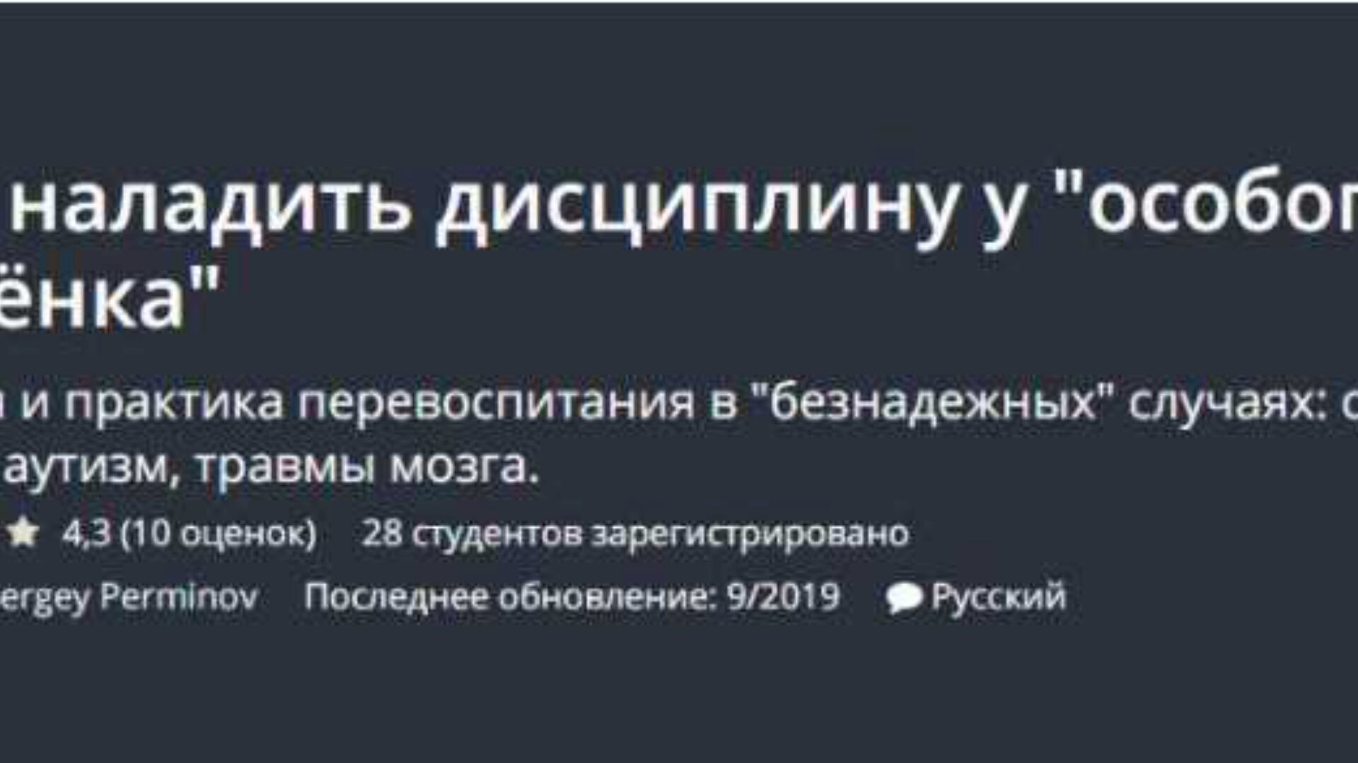Отзывы о курсе [Udemy] Как наладить дисциплину у особого ребёнка (Sergey Perminov)