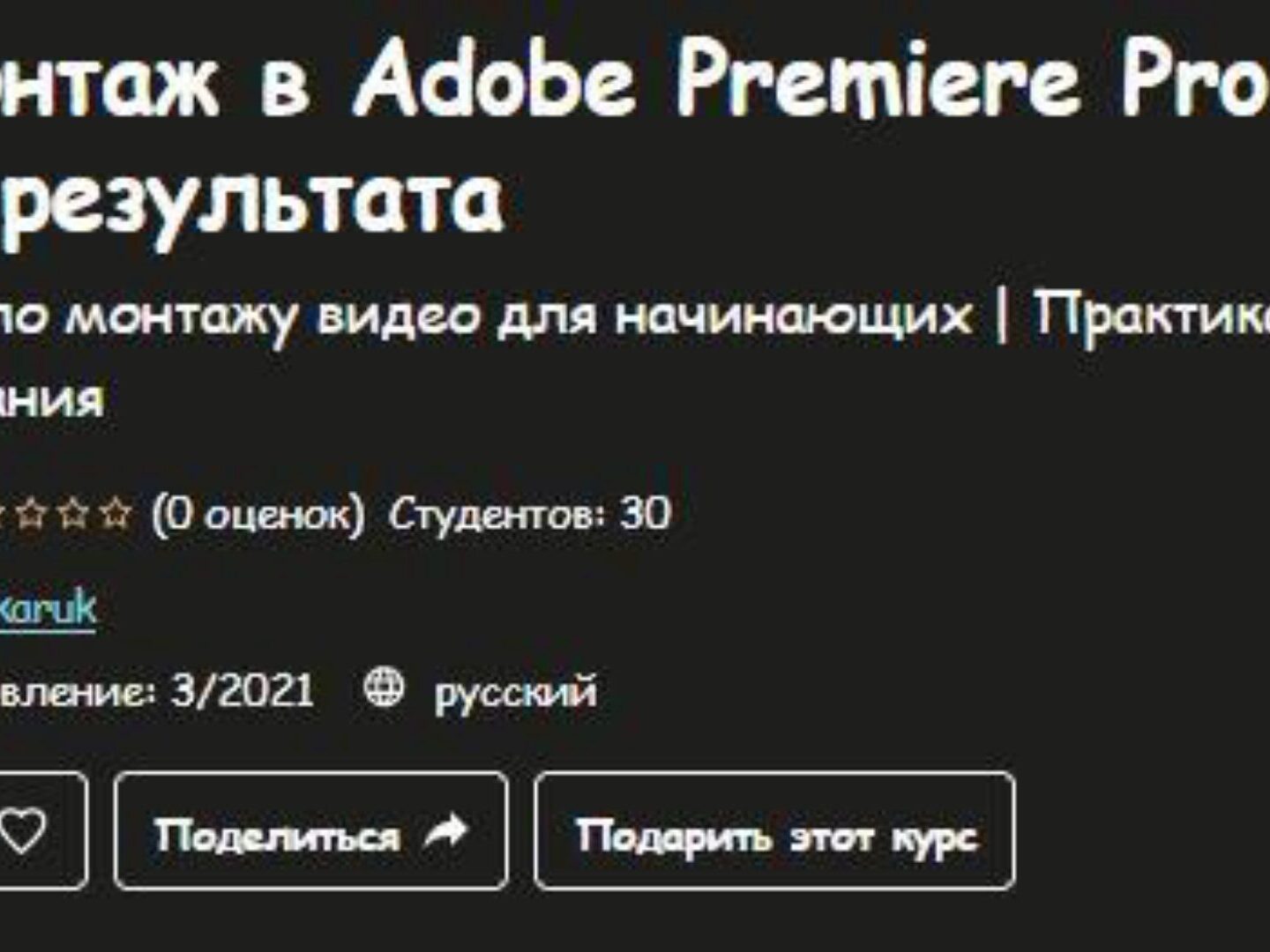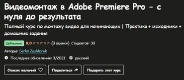 Отзывы о курсе [Udemy] Видеомонтаж в Adobe Premiere Pro - с нуля до результата (Serhii Zashkaruk)