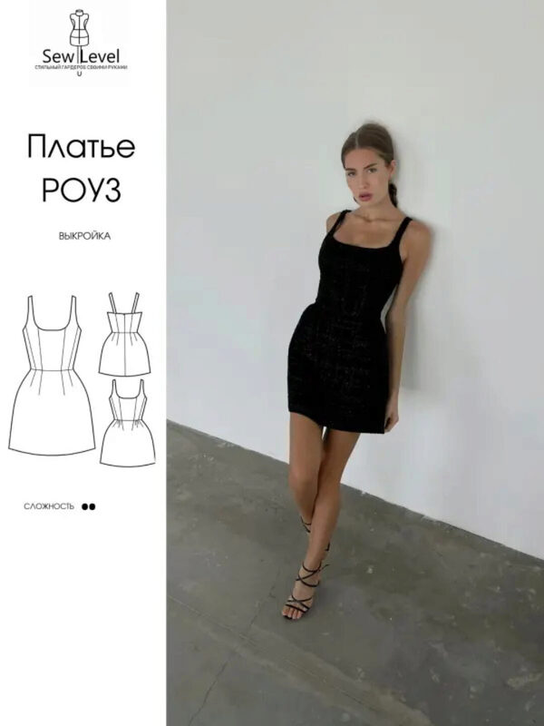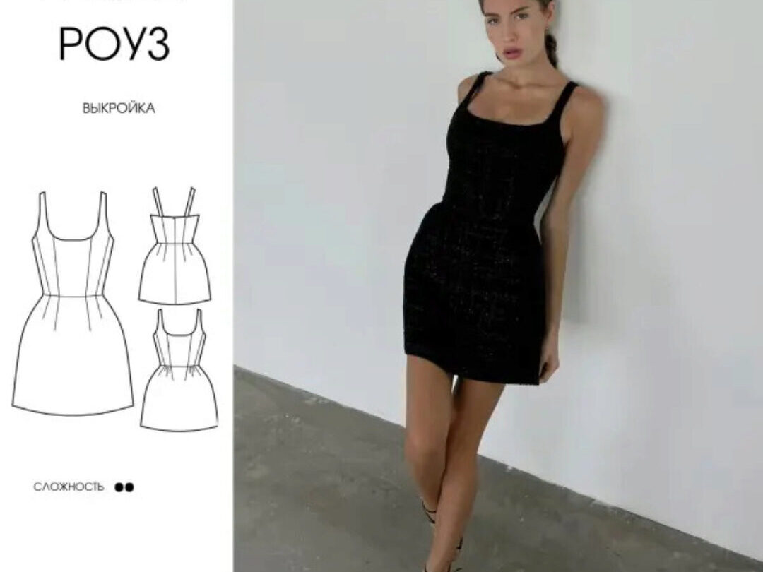 Выкройка женского коктейльного платья-мини на бретелях. Глубокое декольте и плотно прилегающий лиф визуально делают зону декольте эффектнее.