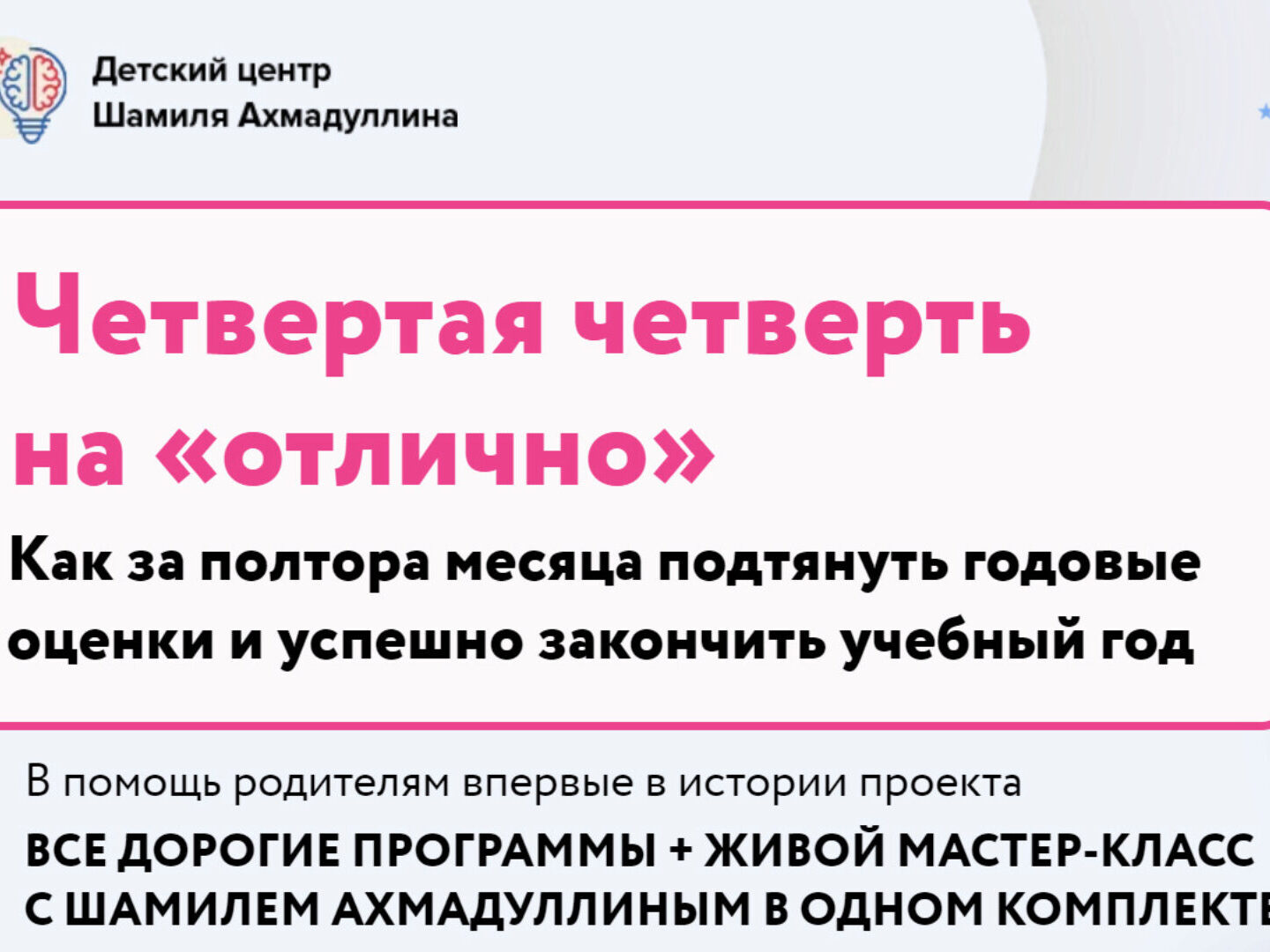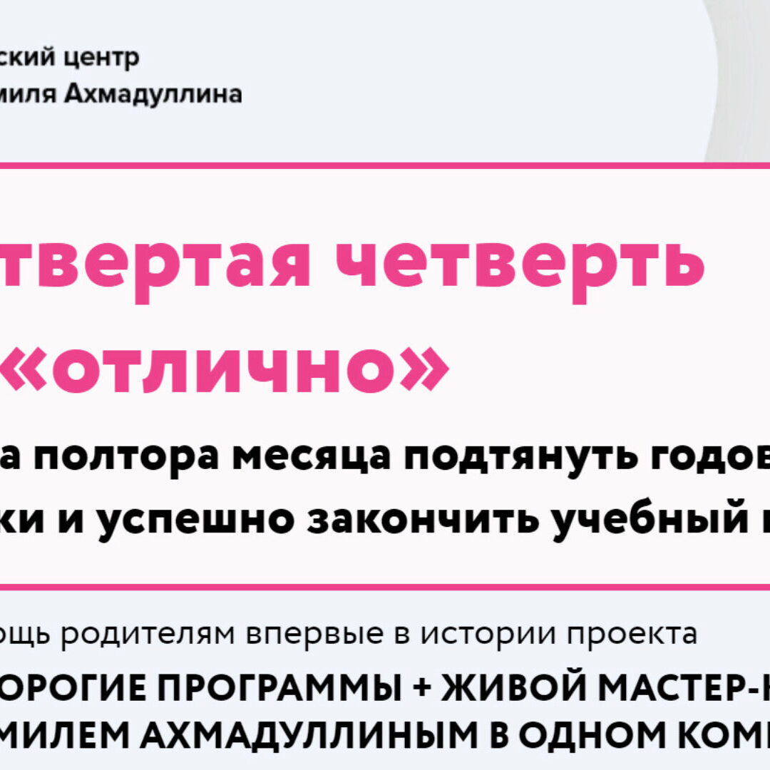 В помощь родителям впервые в истории проекта все дорогие программы + живой мастер-класс с Шамилем Ахмадуллиным в одном комплекте.