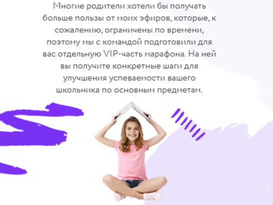 Вам обязательно нужно быть, если вы уже столкнулись с такими проблемами Ваш ребёнок в начальной школе 1-4 класс После марафона вы поймёте: как научить ребёнка самостоятельно делать уроки и улучшить его обще учебные навыки, учёба начнёт даваться легче, а оценки станут лучше Ваш ребёнок в средних