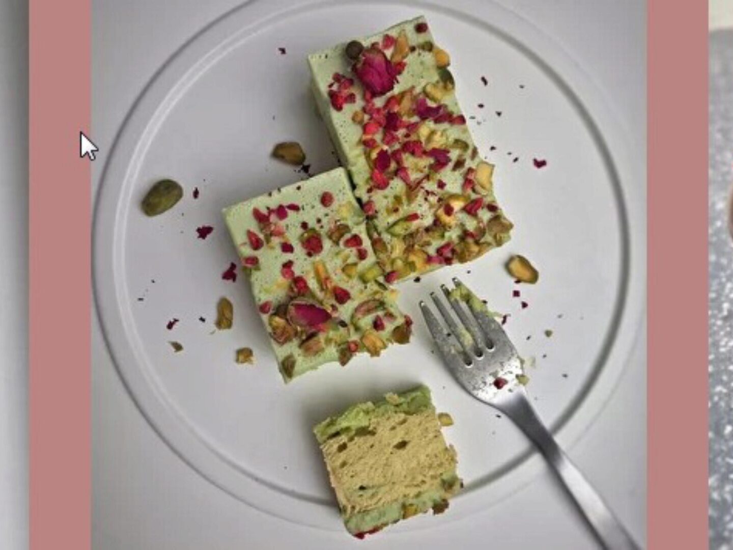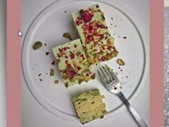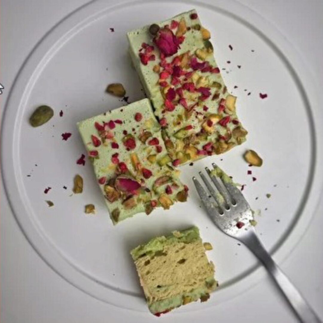 - Фисташковое птичье молоко без сахара на бисквитной основе со сливочной глазурью. Фисташковое пирожное Пищевая ценность в 100г готового изделия: белки-9.2г, жиры-18г, углеводы-2.3г пищевые волокна 1.1 Энергетическая ценность в 100г готового изделия: 210.2 кКал (878.6 кДж)