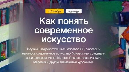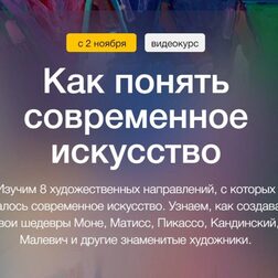 3 вебинара перевернут ваше представление о современном искусстве. Это не значит, что оно вам понравится, — зато вы поймете, откуда оно взялось, каким бывает и зачем существует. Вслед за художниками ХХ века мы увидим красоту геометрических форм и разглядим произведение искусства в банке супа. Раз и навсегда разберёмся в «измах», терминах и течениях и перестанем чувствовать себя неуютно в галереях современного искусства. В фокусе: Малевич, Кандинский, Матисс, Поллок, Ротко, Уорхол, Дюшан, Дали и другие.