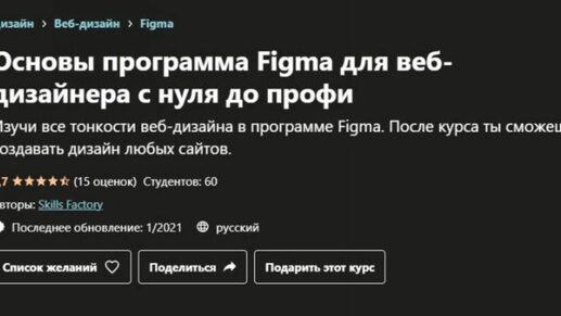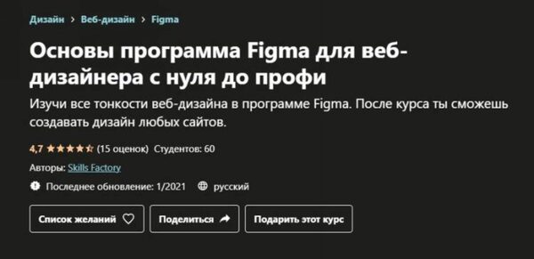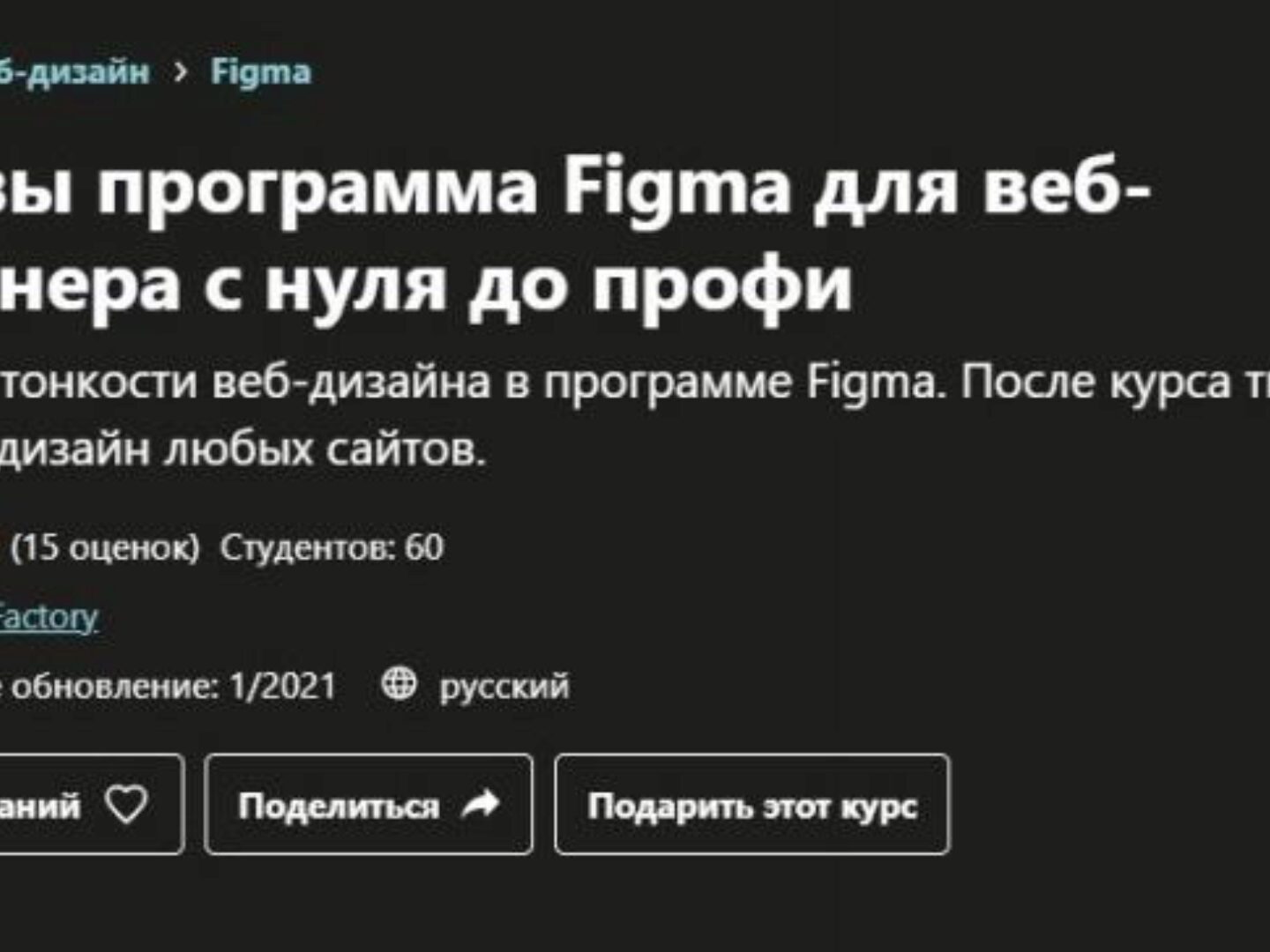 Отзывы о курсе [Udemy] Основы программа Figma для веб-дизайнера с нуля до профи (Skills Factory)