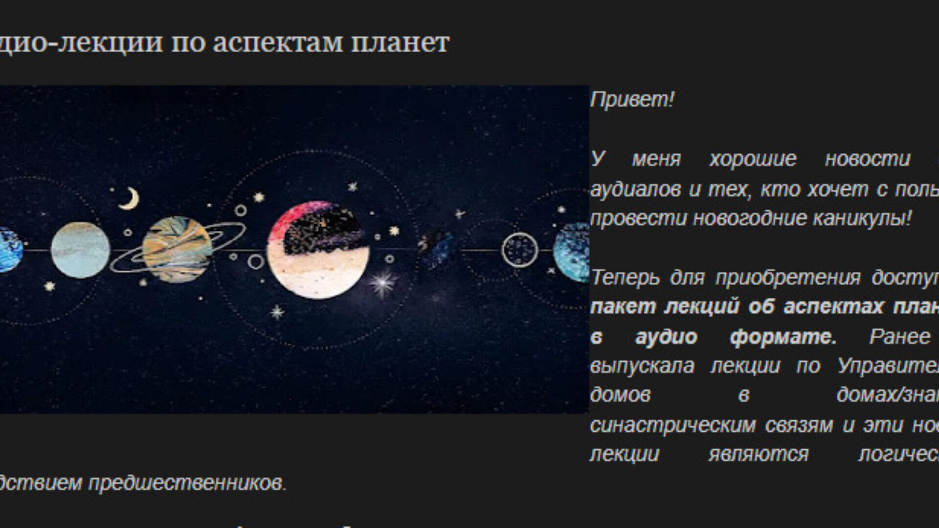 Отзывы о курсе «Аудио-лекции по аспектам планет» от Софии Эдельштейн