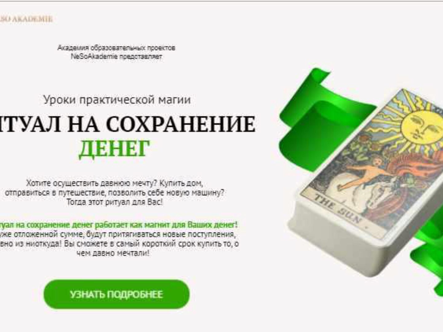 Ритуал очень хорошо сохраняет энергию денег и позволяет привлекать еще деньги откуда-то. Самый продаваемый и обсуждаемый ритуал от Софии Вюрстлин
