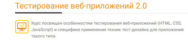 Кроме того, в этом курсе даются основы нефункционального тестирования веб-приложений – тестирование производительности, защищенности, удобства использования. В дальнейшем можно продолжить изучение отдельных видов нефункционального тестирования в более углублённых специализированных курсах Тестирование производительности веб-приложений, Тестирование защищенности веб-приложений и Тестирование удобства использования.