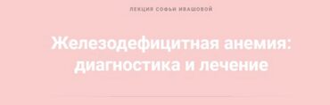 Софья Ивашова «Железодефицитная анемия: диагностика и лечение»