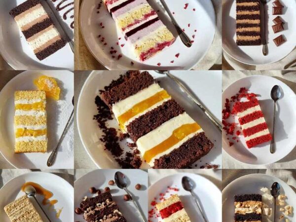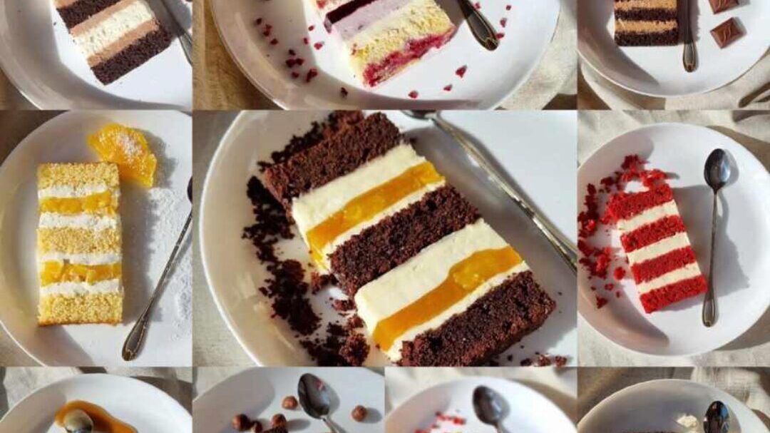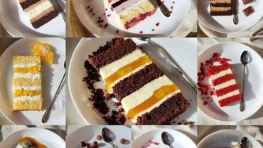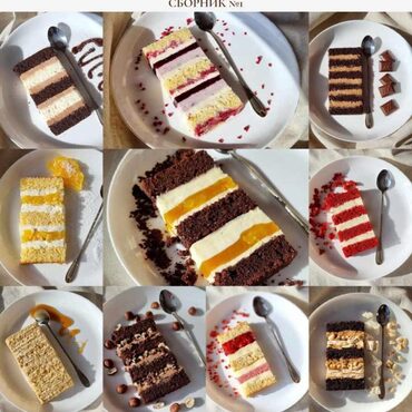 1. Морковный торт со сметанным муссом морковный бисквит молочная пропитка сливочная соленая карамель сметанный мусс крем сметанный 2. Торт Банановый смузи банановый бисквит пропитка на сгущенном молоке банановое кремю карамельный ганаш сырный крем с белым шоколадом 3. Торт Малиновый пунш нежный