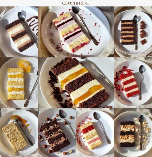 Каждая рецептурная карта — подробное руководство по приготовлению торта с нуля. Она представляет собой текстовый документ, который содержит рецепт с подробно описанной техникой приготовления. Муссовые торты: Клубника-фисташка Фисташковый с малиной Апельсин-морковь Яблочный пирог Сникерс