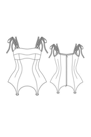 Женский костюмный топ с V-образным вырезом AMALIA Топ полностью на подкладке, с отрезной линией под грудью, чашка с рельефом, переходящая в бретель. На спинке разъемная молния в среднем шве. V-образный вырез горловины Конструктивные прибавки: (прибавка очень маленькая, будьте внимательны в замерах,