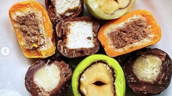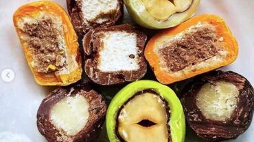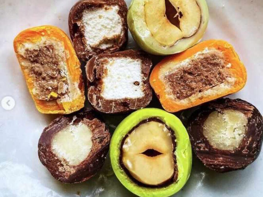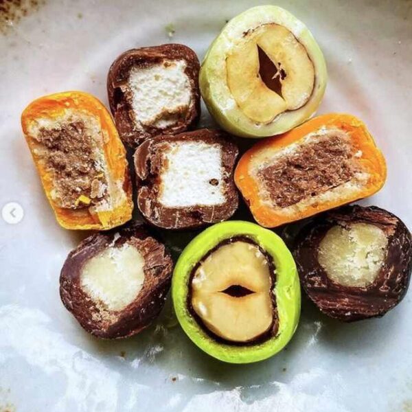 - Цукаты-темный шоколад-вафля-молочный шоколад