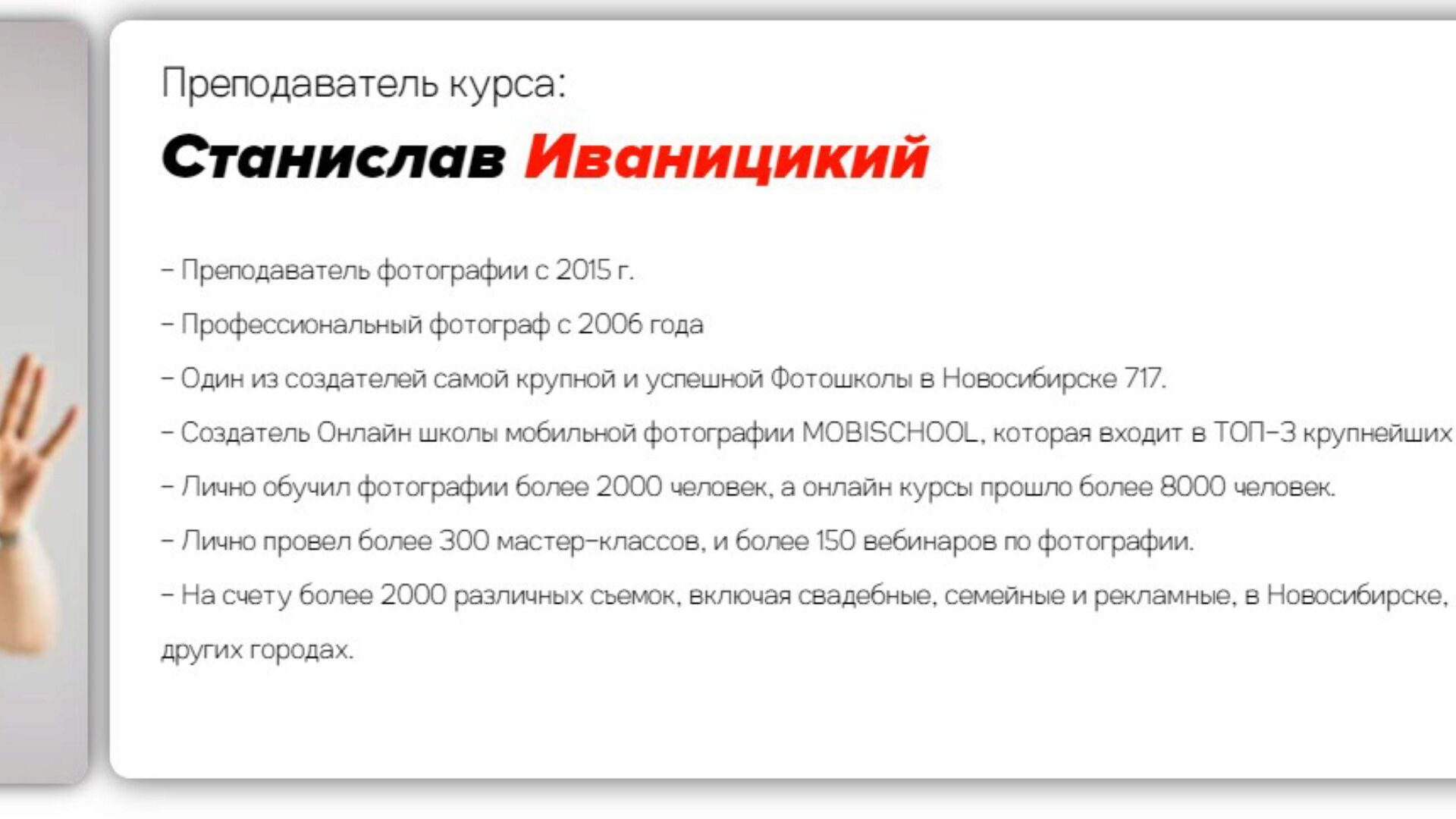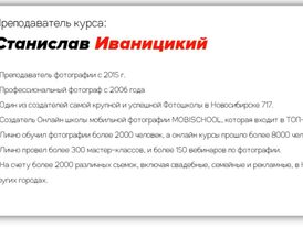 Станислав Иваницикий «Научись делать красивые фото на камеру телефона. Без куратора» — Mobischool