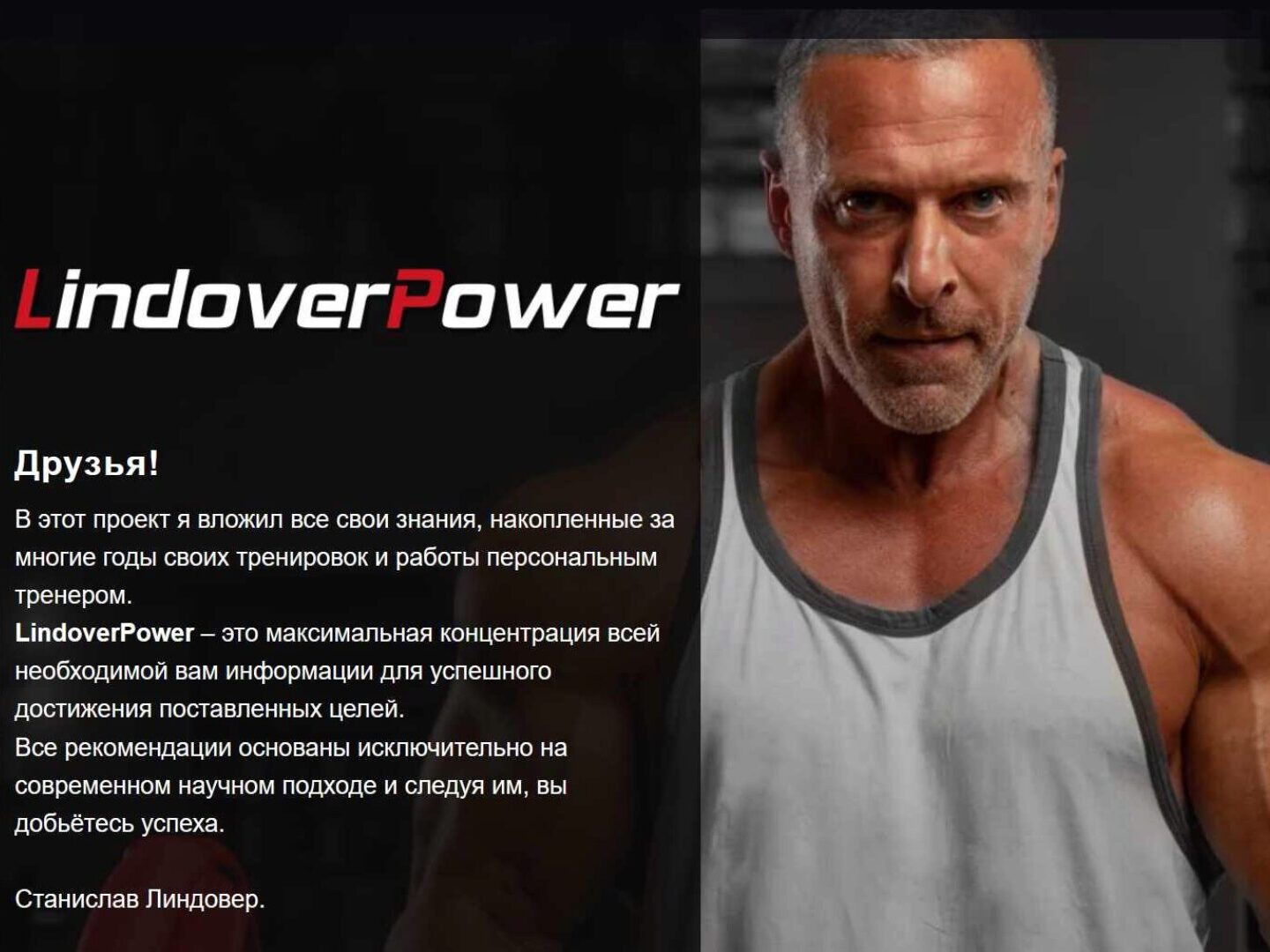 Описание книги «Станислав Линдовер – культовая личность в российском и европейском мире бодибилдинга и фитнеса. Благодаря собственной системе тренировок, включающей особый режим питания и соблюдение специальной техники выполнения упражнений, Станислав уже несколько десятилетий поддерживает свое