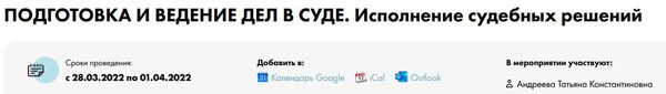 Обо всех изменениях судоустройственного и процессуального законодательства, особенностях и нюансах их применения, намечающихся проблемах и возможных способах их решения в том числе с учетом «переходных» разъяснений Верховного Суда можно будет узнать на программе повышения квалификации Школы права «СТАТУТ», посвященной актуальным вопросам применения процессуального законодательства и новым правилам рассмотрения дел в судах.