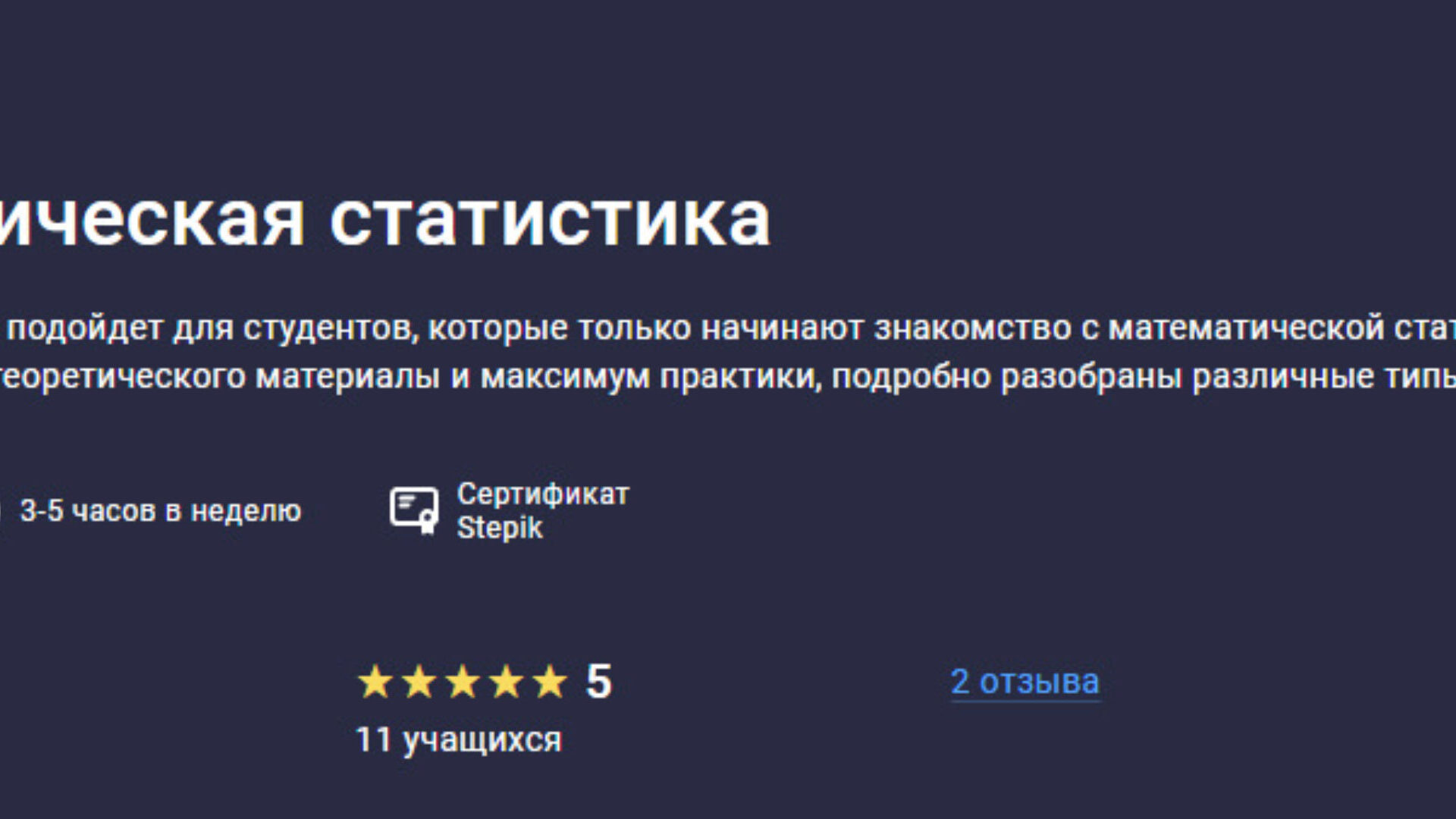 Отзывы о курсе [Stepik] Математическая статистика от Виктории Паксеваткиной