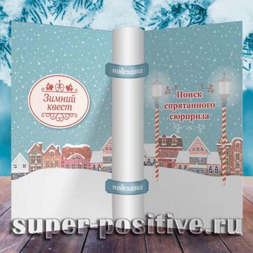 - Зимний квест для всей семьи включает набор заданий, каждое из которых прячется в определенном месте. Решение каждой загадки указывает на место, где спрятана следующая подсказка. Таким образом, получается цепочка заданий, которую необходимо пройти шаг за шагом, чтобы найти спрятанный сюрприз.