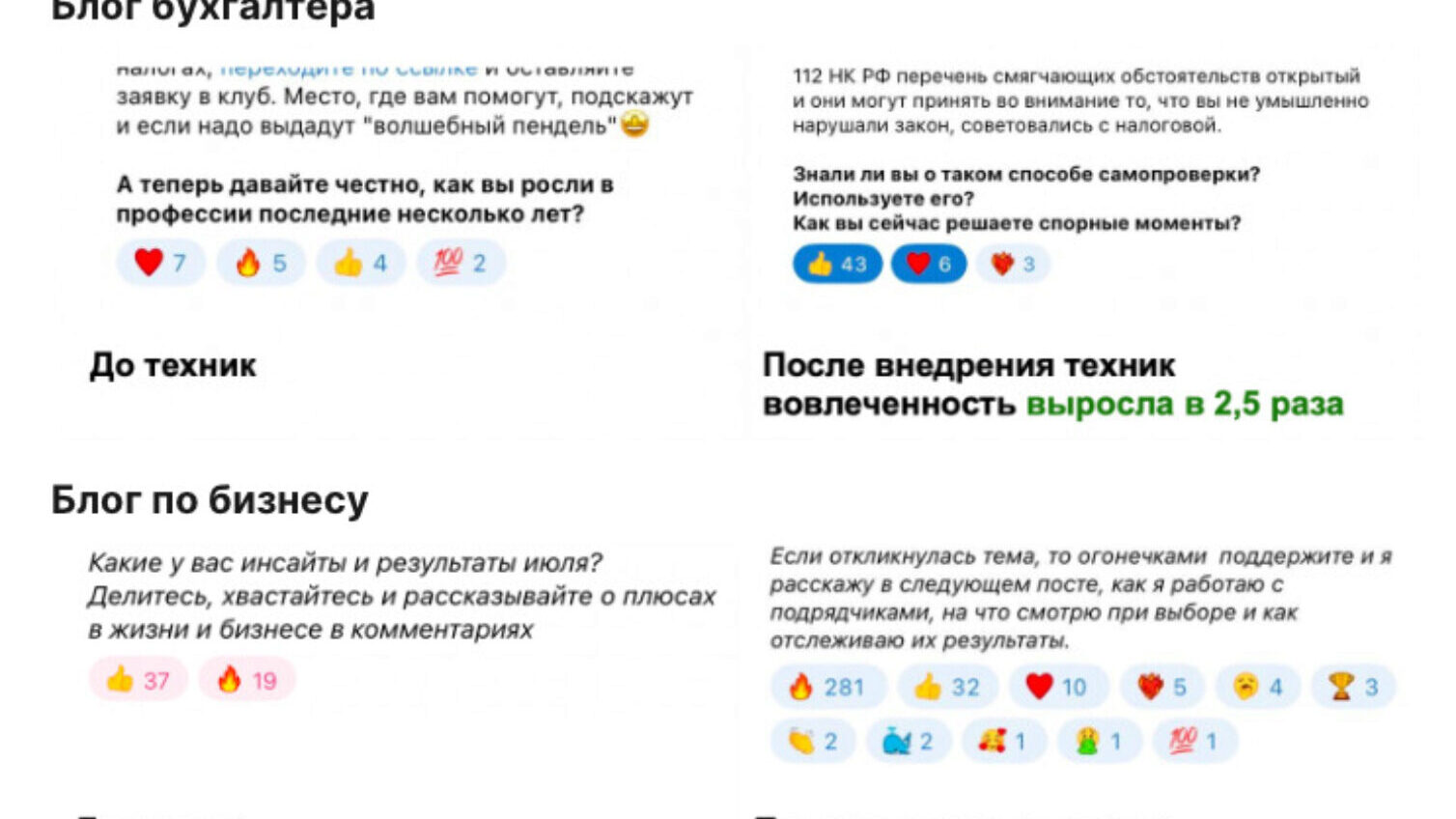 - Не знаю, про то, как выбрать тему поста, чтобы она точно взлетела. Обидно, когда потратили время, а реакции почти никаких.