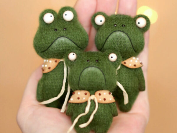 Потешные жабы ростом 6-8см связаны из пряжи Real40 крючком №1,5. Пришивные только основы для глаз у мамы и малыша. Оживите целую семейку чудиков или выберите понравившийся размер и форму будущего создания.