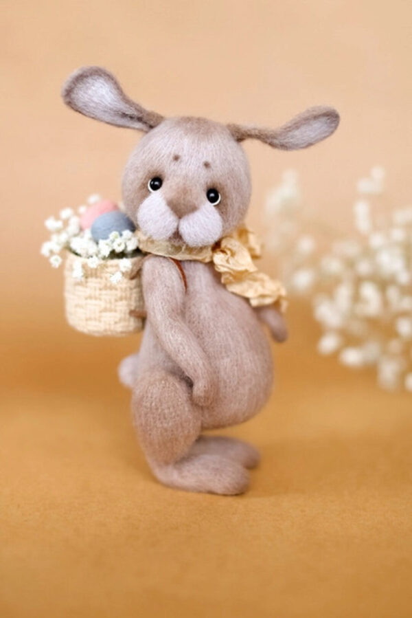 Милый маленкий зайка, которого не хочется выпускать из рук. Его можете связать и вы, для вас подготовлен МК. Нет ни одной детальки, которую нужно было бы пришивать. Все детальки ввязываются в процессе вязания. В лапках проволочный каркас, поэтому он может принимать любые позы.