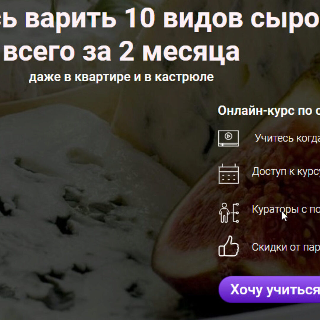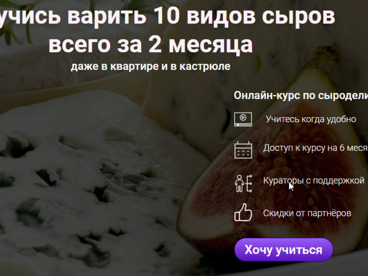 Мы составили курс так, чтоб научиться варить полезный и вкусный сыр было доступно каждому и даже в квартире