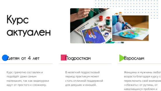 О курсе Этот онлайн курс рисования подойдет как для детей, которые в первый раз взяли в руки кисть, так и для «продвинутых» юных художников, которые хотят расширить и углубить свои знания. Ребята в простой и доступной форме познакомятся с основами живописи и графики. Освоят такие понятия как: свет,