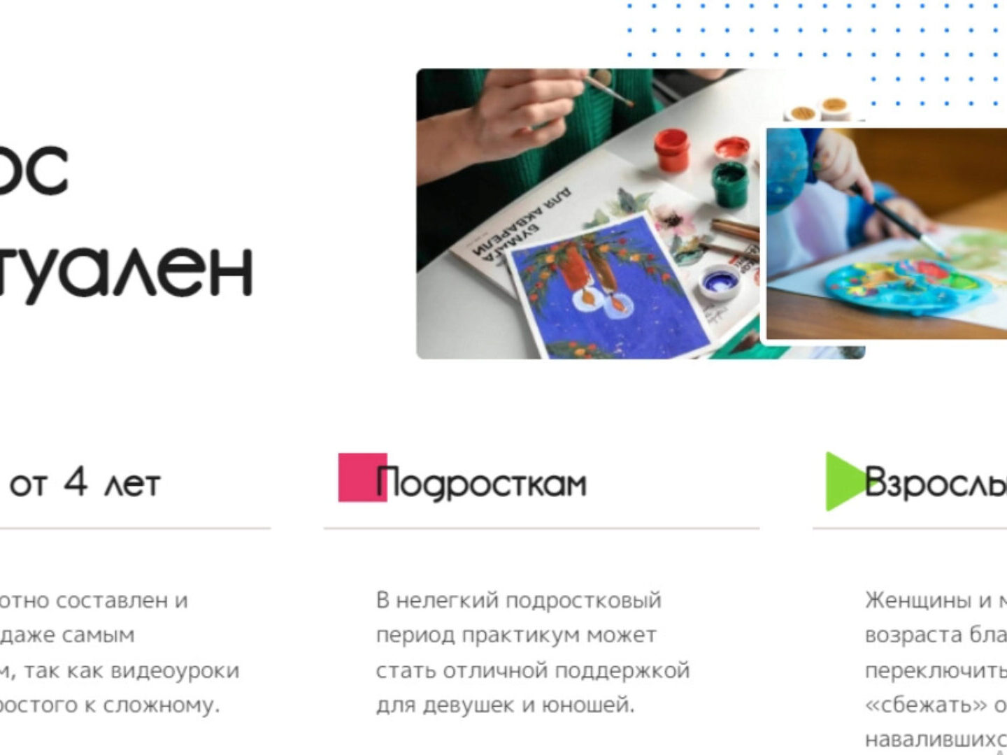 - Вводная часть с объяснениями от арт-терапевта Александры Черкасовой.
