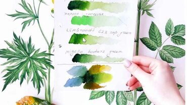 Нарисуем зеленый и сухой лист в технике ботанической живописи.