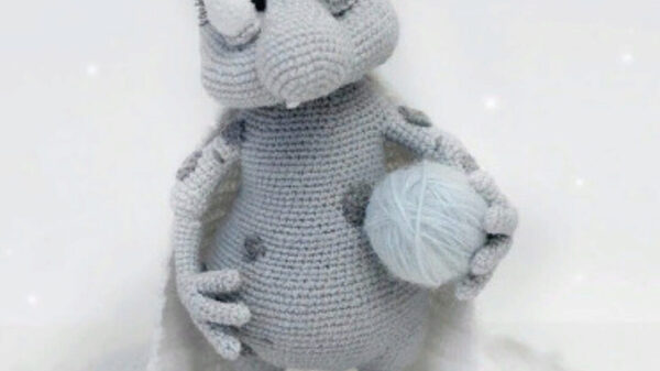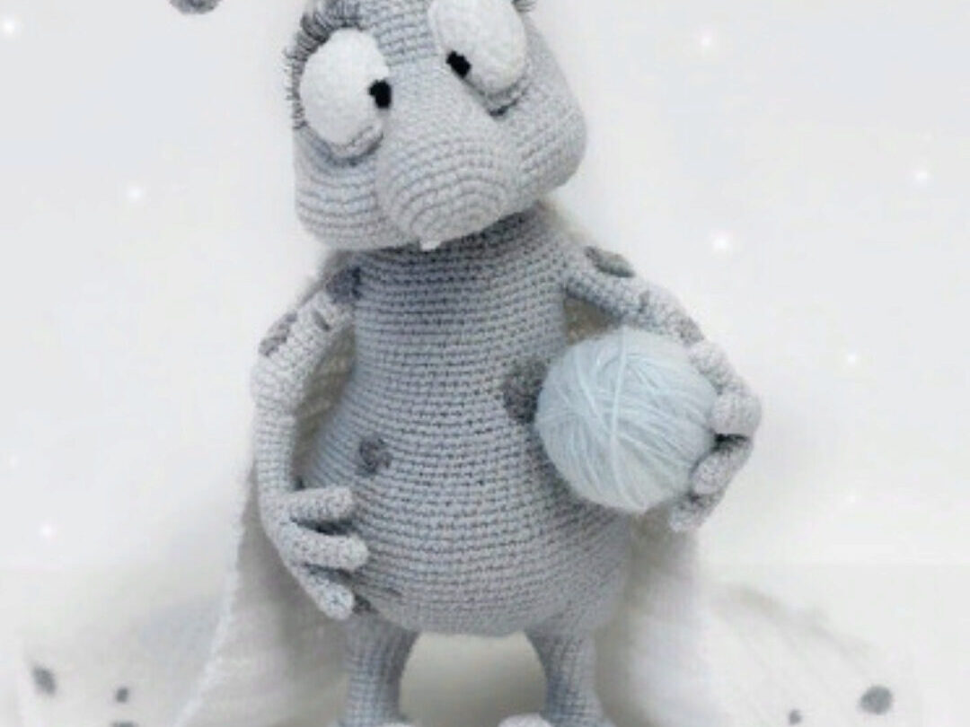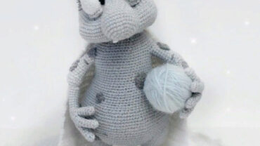 Подробное описание игрушки с фотографиями процесса вязания и с ссылками на короткие видео со сложными моментами. Игрушка высотой ~40 см с завязанными лапками