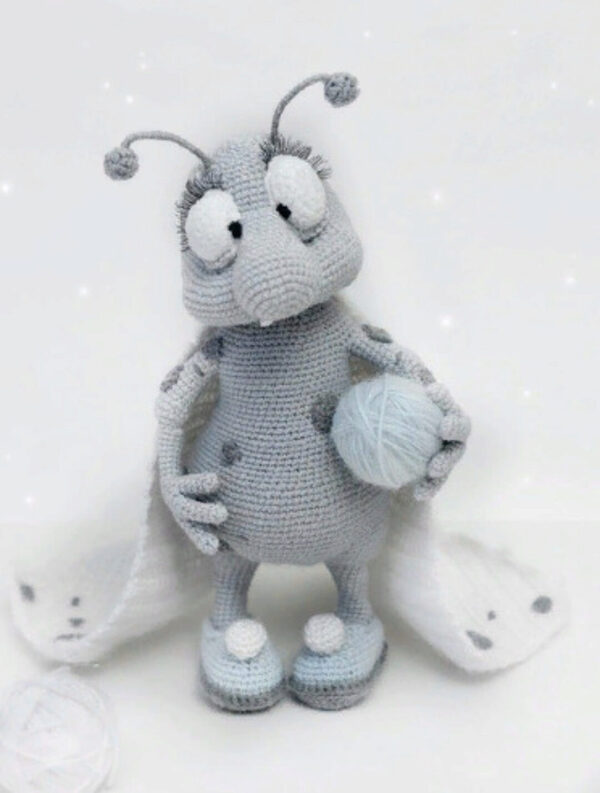 Моль, в итоге, получается ростом почти 28 см (без усиков), если правильно соблюдать параметры пряжи.