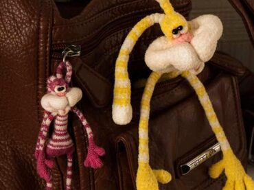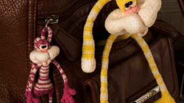 -Основная пряжа: «Andre Classic» Alpina (60% акрил, 35% вискоза, 5% спандекс, 530 м/100 г), либо любая пряжа типа велюра. Желтая- 15г, белая – 15г, розовая- 2м